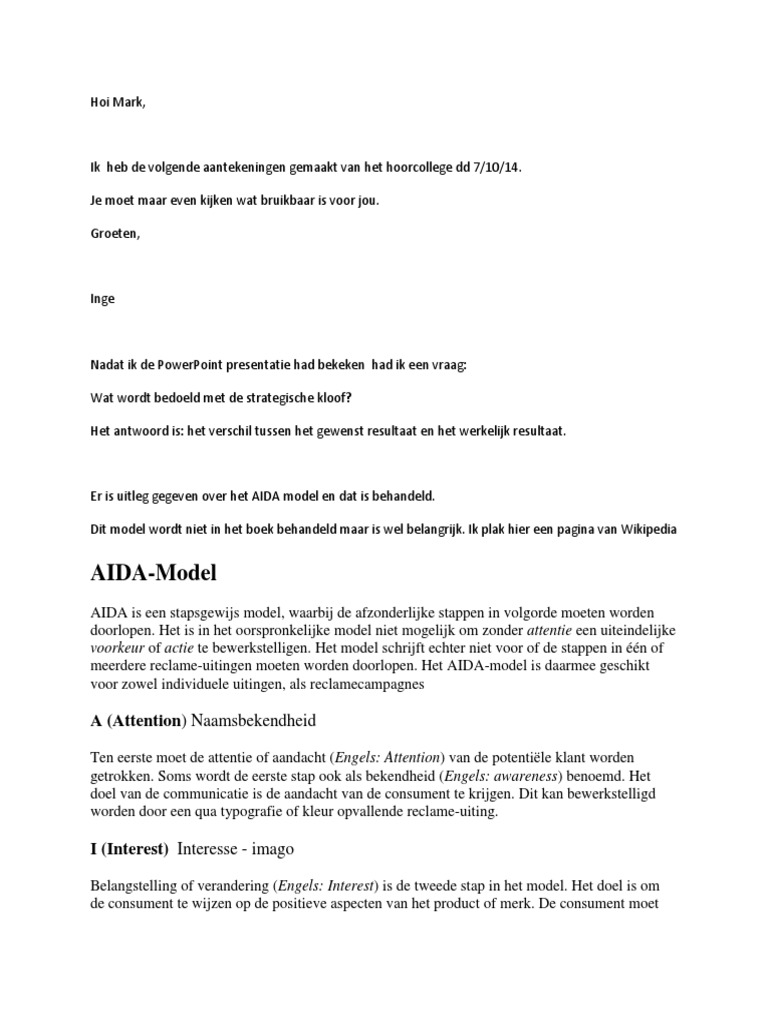 De i van aida kan je zien als prospects. Hieronder vind je een voorbeeld en uitleg over deze formule en tips aan de hand van een aantal praktijk voorbeelden. Met een sollicitatiebrief probeer je jezelf te verkopen aan de werkgever. De aida methode als verkoopmethode. Zorg dat jouw brief opvalt tussen de vele andere brieven wek de interesse van de lezer met unieke verkooppunten roep het verlangen op met jou kennis te maken en sluit af met een aanzet tot de gewenste actie. De a van aida wordt aangeduid voor cold prospects waarbij net het eerste contact is gelegd.