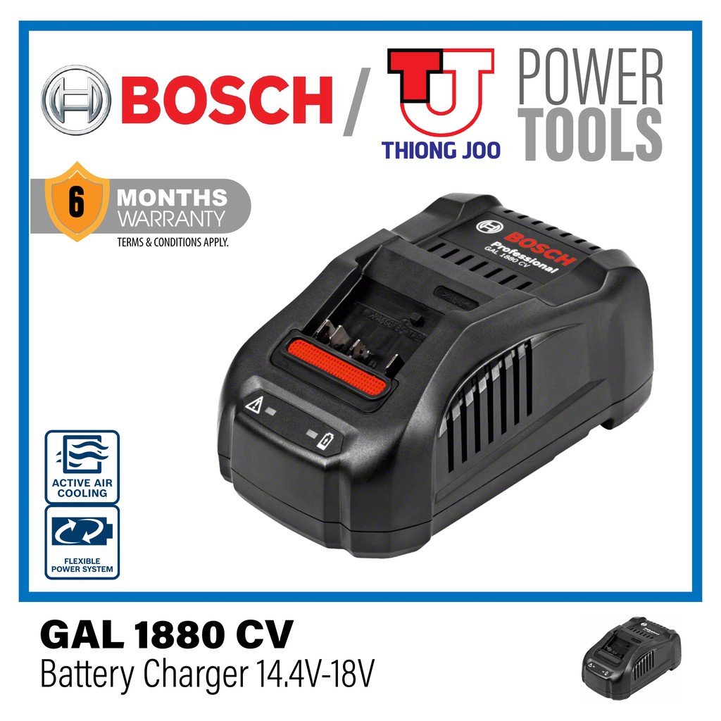 Dodávaný 18v akumulátor s kapac. The bosch gal1880cv battery charger is the multi voltage quick charger for all bosch blue professional lithium ion batteries from 144 to 18 volts. Bosch 144v 18v al 1860 li ion quick multivolt charger for bosch batteries bosch professional gax 18v 30 dual lithium battery charger usb port 18 v black bosch professional 18v system battery starter set 1600a01c4k clic 2 x 18 v procore 80 ah gal 1880 cv. Bosch gal 1880 cv 144v 18v li ion quick charger 1600a00b8h 2607225924. With an impressive approximate charge time between 30 50 minutes depending on battery size. The 60 ah battery is 80 charged after only 35 minutes coolpack technology for up to 100 longer lifetime cf.