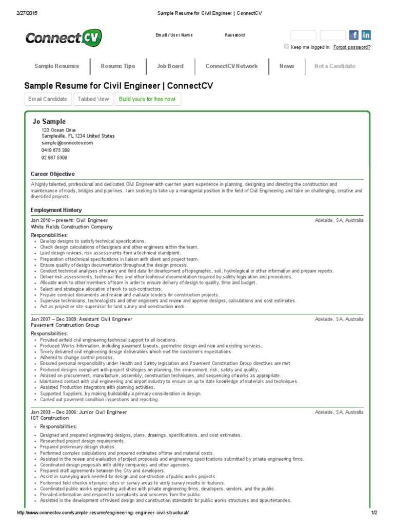 Showing jobs for civil engineer with 2 year experience modify. Resume writing text resume visual resume resume quality score free resume samples jobs for you jobs4u interview. A healthy market usually also means healthy competition however so make sure to stand out with a stellar resume. Writing a great civil engineer resume is an important step in your job search journey. To meet the predicted growing pace of infrastructure development over the next few years the demand for civil engineers will also rise. When writing your resume be sure to reference the job description and highlight any skills awards and certifications that match with the requirements.