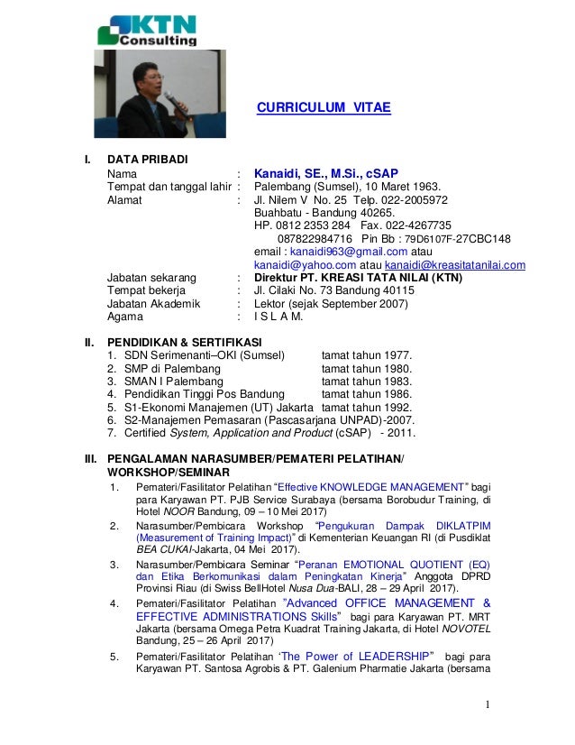 Cv Fasilitator Narasumber Training Kanaidi Se M Si