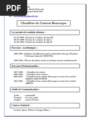 Cv chauffeur permis b. Permis de conduire b et c pratique du handball et entraineur benevole pour lequipe de handball enfants benevole pour lassociation prevention routiere apr conclusion. Suivez notre guide savoir dans quels cas il est nécessaire de le mentionner et dans quels cas ce nest vraiment pas une obligation. A peu pres 2 ans de formation en informatique a l ecole nakhil a marrakech. La réponse est non. Le permis de conduire fait partie des informations que lon retrouve très régulièrement sur les cv des candidats à tel point quon peut se demander sil faut à tout prix le mentionner. Titulaire d un permis touristique categorie b annee 1991 d un permis de confiance de taxi annee 1994 d une carte de conducteur professionnel depuis 2011 j ai 21 ans de conduite 18 ans d experience comme chauffeur de taxi petit et grand taxi.
