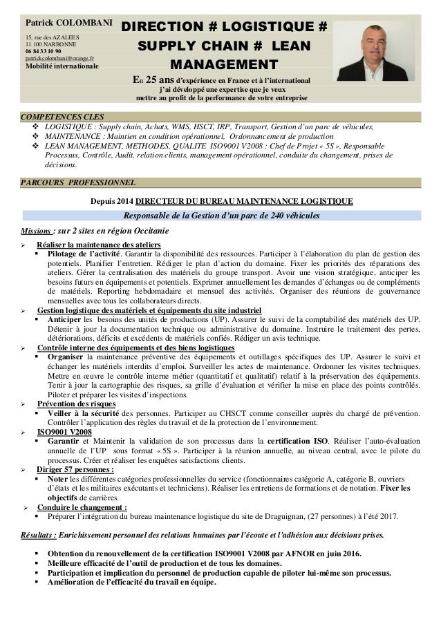 Cv Directeur Logistique Supply Chain Lean Management