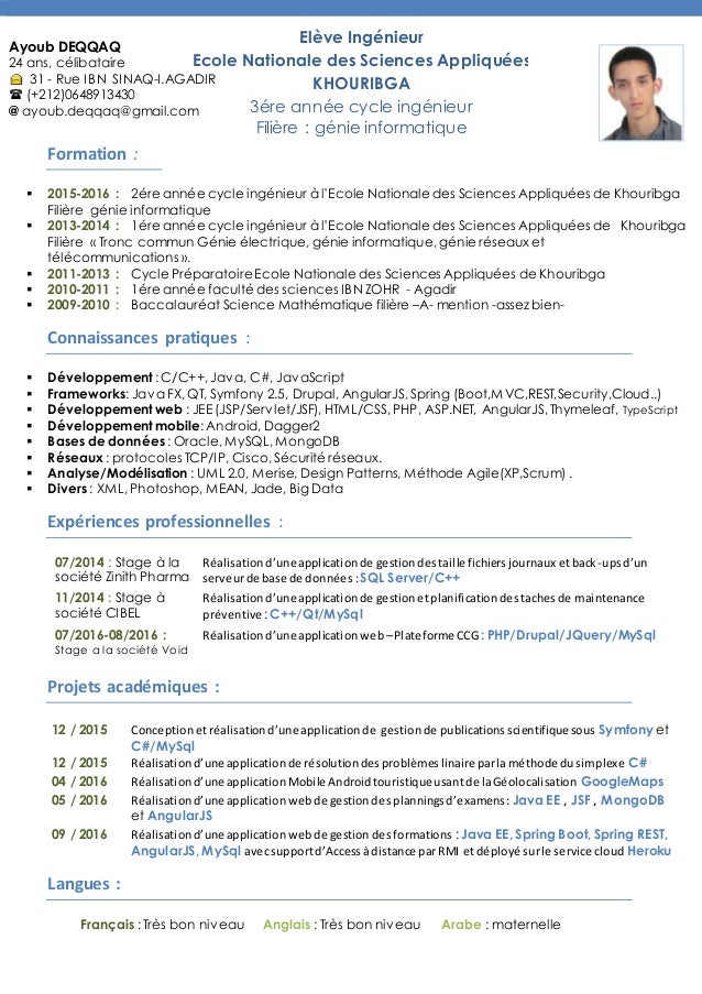 Partenaire aidostage est un site du groupe sepro comme informatiquemploi. Dans la conception cv ingénieur en logiciel informatique la première impression que vous donnerez á votre lecteur passera par lesthétisme de votre document. Voici un exemple de cv. Baccalaureat serie d au lycee moderne du kan tiebissou. Donnez votre avis sur la lettre de motivation ingenieur informatique. Voici un exemple de cv.