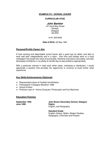 By michael cheary. To put it simply every time you apply for a new job you will need to write a new personal statement which should be tweaked to match the job description. A winning cv is crucial to getting your foot onto the career ladder so i have included example cvs for school leavers and graduates with some tips on writing your own cv. Dont include date of birth marital status children national insurance number gender or any other personal data that is unrelated to your ability to do the job unless youre required to on an application form. What is a cv. School leavers cv template.