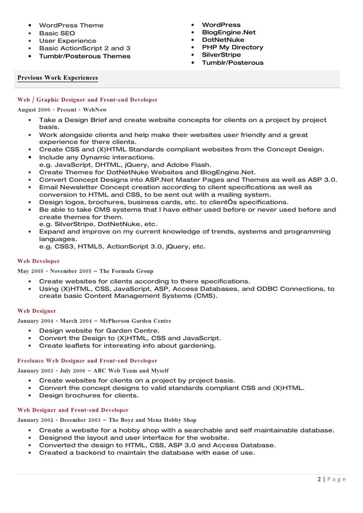 Freelance resume sample text version john c. The freelancer developer resume typically consists of the following job tasks identifying the requirements of the company discussing the needs with customers. A freelancer developer is a self employed professional who can design and code websites. Creating an effective resume for freelancers can help you a lot in the hiring processes that you need to undergo if you are aiming for a freelance work position. Highly skilled freelance web developer with 13 years of experience with a passion for solving complex business problemsexcels at the client and internal user interaction with demonstrated ability to translate business requirements into technical requirements and back again as required. How to personalize your resume for the client.