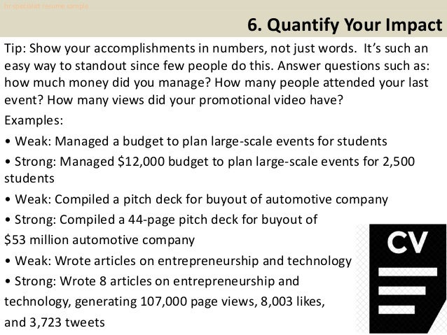 From recruiting qualified individuals up to ensuring that all employees are well taken care ofif you want to have a career in the human resource industry it is very important for you to develop a resume that can showcase the deliverable that you can provide the business with. A well written resume sample for human resources specialist emphasizes the following responsibilities. Subscribe for the latest updates. Email address find your resume. 20042006 professional services consulting firm 300 employees hr generalist benefits specialist human resource corporation tampa fl 20022004 it environmental management consulting firm 300 employees human resources assistant education certification affiliation. In human resources dealing and advising on disciplinary and grievance procedures.
