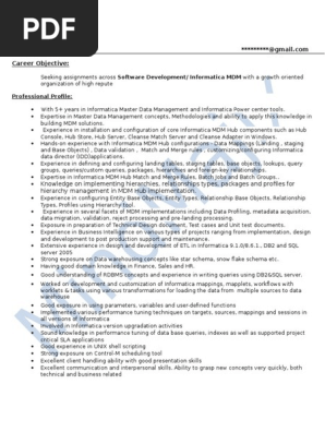 Your name address email id telephone career objective. 3 yrs 5 mo. Informatica resume samples for 0 2 years experience. Informatica developer with around 5 years experience from oracle india resume in bengaluru ka india august 2015. Good knowledge on data warehousing concepts like star schema snowflake schema dimensions and fact tables. Around 3 years of data ware housing experience using informatica power center 9x10x.