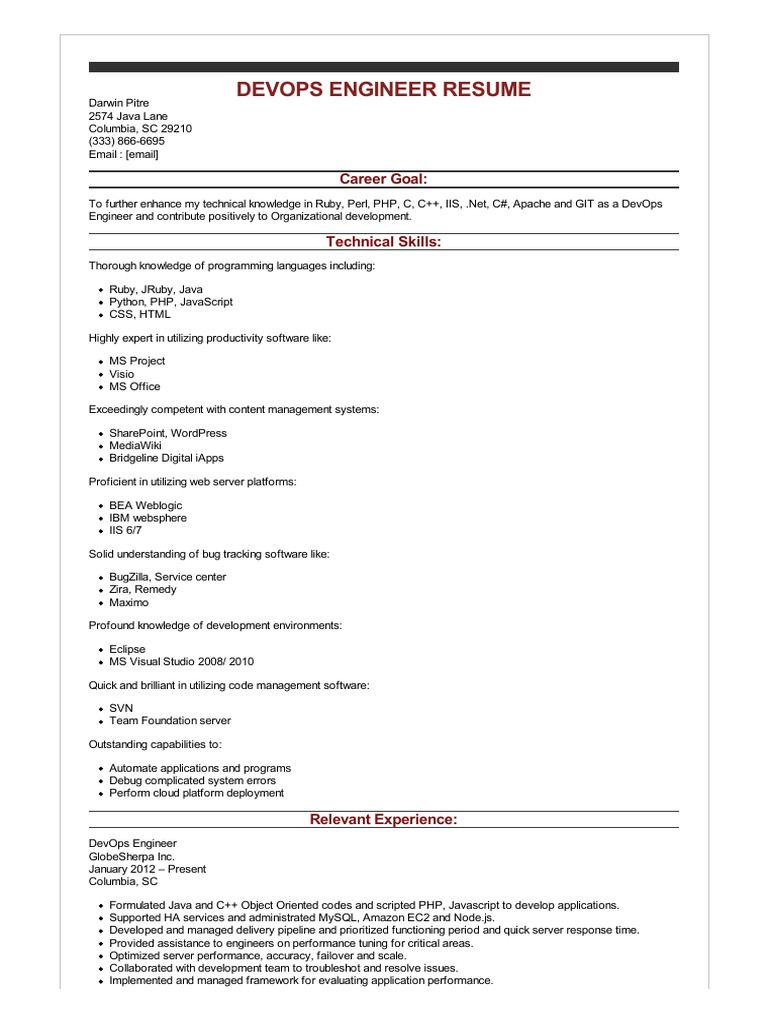 Devops engineer job description. Wondering if you have the required devops skills well check out the edurekas devops course content. Web systems administrator devops engineer manage support andor provide guidance for systems running web applications in the som med ed and admissions. Check that comprehensive devops engineer resume example to get some great ideas on how you could improve your developer cv in in minutes. A hiring manager reading this devops resume objective would learn that youve worked for 10 years in bfsi and that you are a do it yourself person. Dont add use photos and master professional language be succinct and straight to the point.