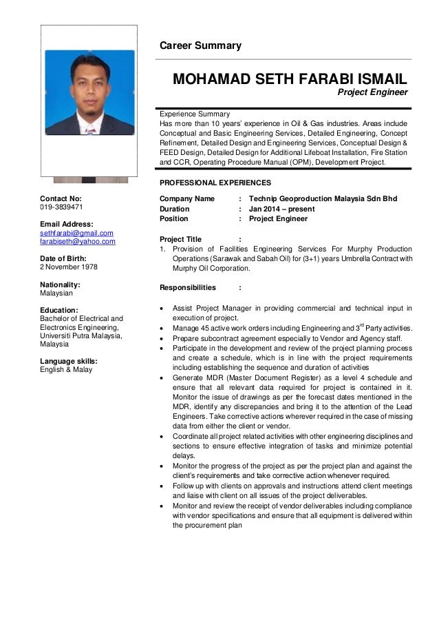 Oil gas industry 3d cad contractual requirements. Safety management in construction 2007 certificate. Bechemical55 yrs project engg 5 years 4 yr degree. Civil engineering september 2004 certificate. Autocad 2005 certificate. Jane cartwright project engineer personal summary a competent project engineer with excellent communication organisation and co ordination skills.