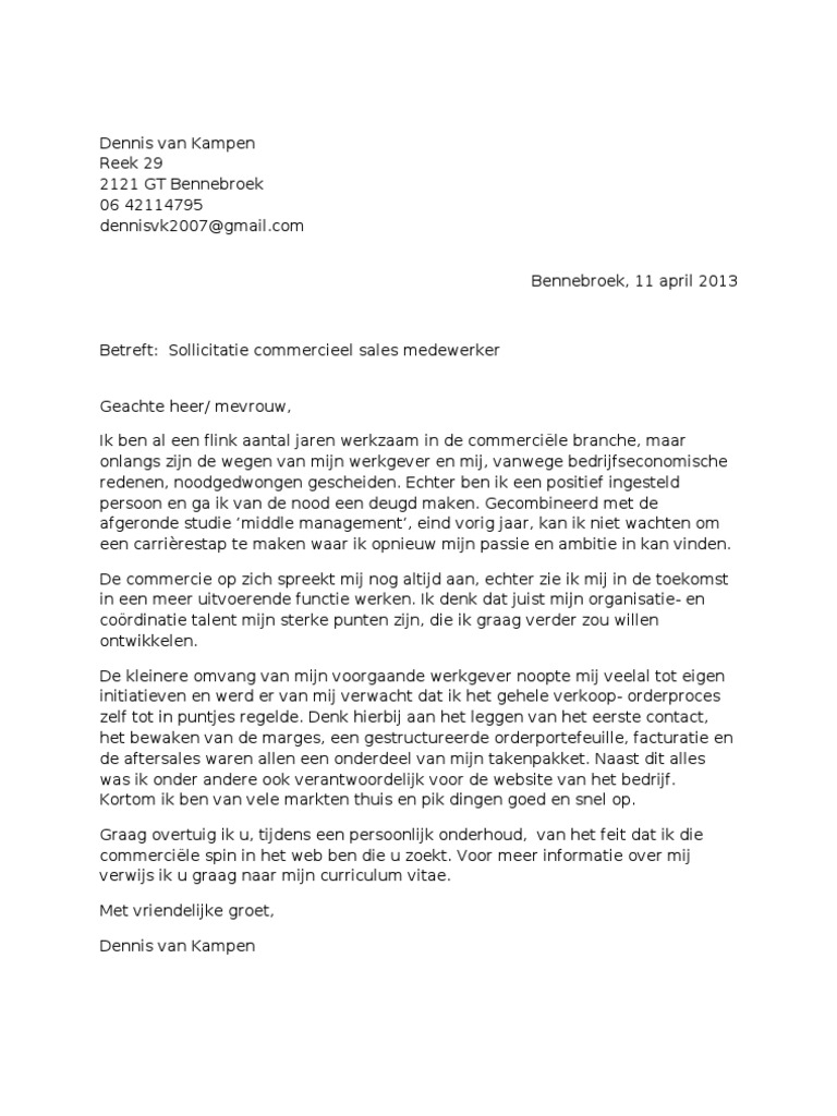 Sales medewerker sollicitatiebrief. Zowel deze sollicitatiebrief voor commercieel medewerker als alle andere zijn bedoeld als voorbeeld. Geachte heer termeulen commercieel enthousiast en vakkundig. Neem deze niet letterlijk over maar gebruik deze als voorbeeld motivatiebrief sales. Deze super originele sollicitatiebrief commercieel medewerker sales is gratis te downloaden onder de afbeelding van de brief op deze paginamet één druk op de link is dit bestand van jou. Het aanbod aan kwalitatieve voorbeeld sollicitatiebrieven online is erg slecht. Deze steekwoorden zijn op mij van toepassing.